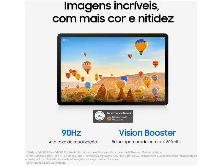 O Galaxy Tab S10 FE conta com Wi-Fi, Bluetooth, GPS completo (Glonass, Beidou, Galileo, QZSS) e uma ampla gama de sensores, tornando-o versátil tanto para uso doméstico quanto profissional.